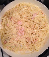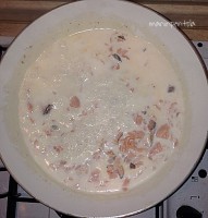 A questo punto aggiungete la panna liquida e fate ridurre il tutto, ci vorranno circa 10 minuti. Aggiungente una spolverata di pepe, mi raccomando non aggiungete sale in quanto il sapore rilasciato del pesce è molto forte e rischiereste di avere un risultato mordente!